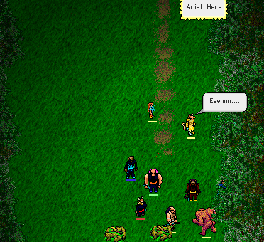 When we started for the way to Camp 4 and reached the northern turn of the labyrinthine way, we nearly faced annihilation. Suddenly not only the previous threats had to be faced, but there were also bombs and burning catapult ammunition shot at us! Luckily a small part of the group survived and began fighting off monsters threatening the healers, gathering in the rest and regrouping. We decided that stopping would be the sure road to death, as we had no way to fight the ranged attackers behind the treeline.